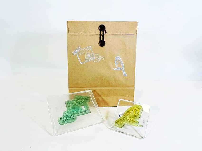 店舗スタッフが事前にスタンプを押したパッケージで商品を包むのも良いですが、店舗内にセルフラッピング用のスペースを用意するのもおすすめです。商品を購入した人が、好きな場所に好きな色でスタンプを押してアレンジでき、「世界にひとつだけのラッピング」をつくり上げる過程を楽しんでもらうことができます。