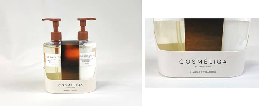 次にご紹介するのは、シャンプーやリンスなどのボトルをセットで販売する際におすすめの紙製パッケージです。