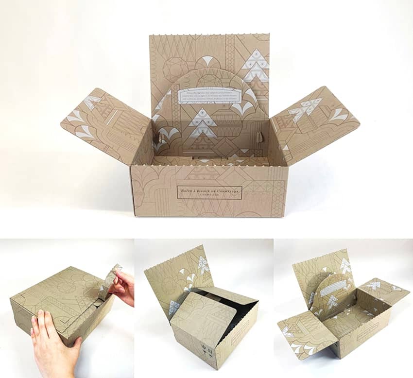 配送箱など、段ボール製のパッケージにおすすめのアイデアです。