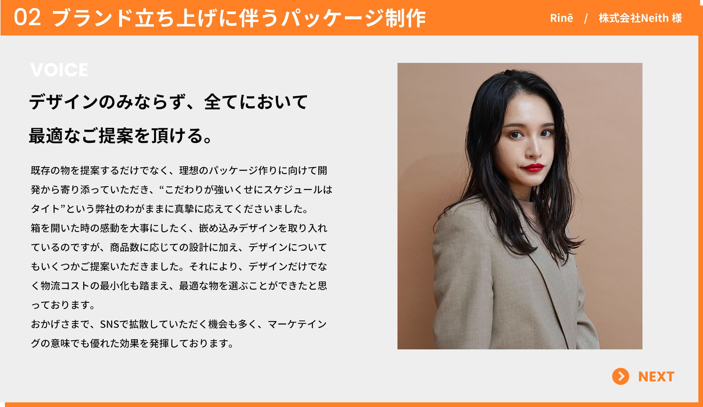 - 商品群を検証し、最適な資材(形状/材質/種類など)をご提案いたします。
