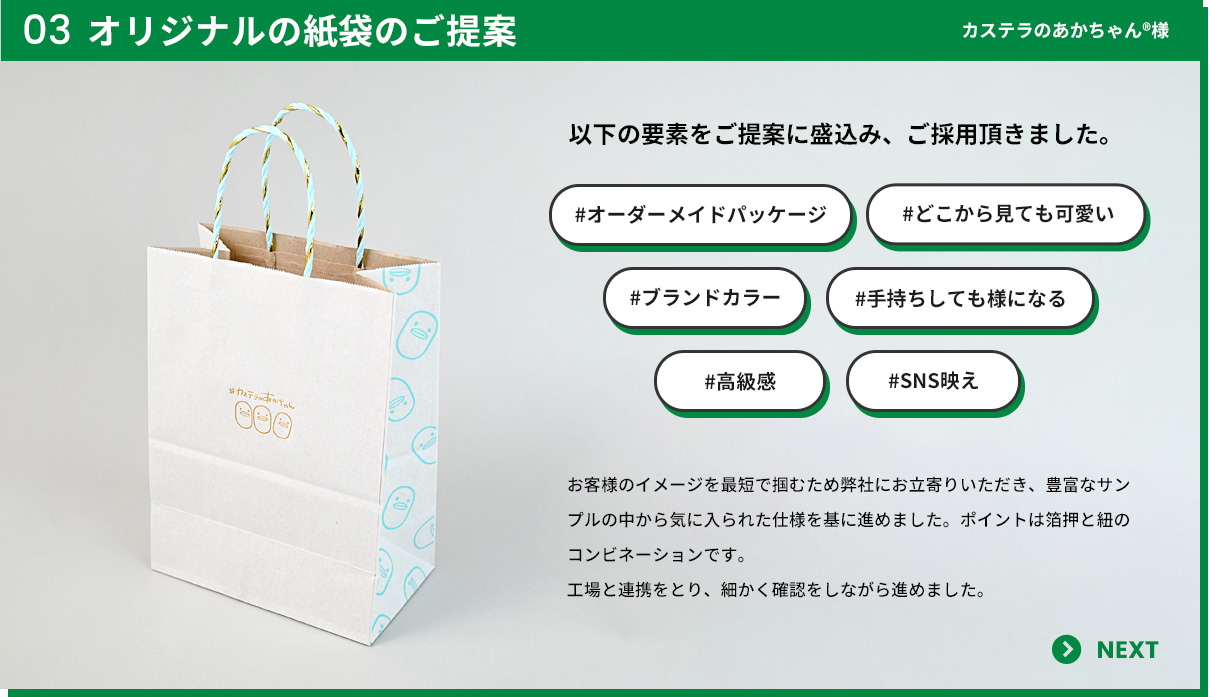 私たちはその想いを包むように、ひとつずつすべてオーダーメイドでパッケージを作り上げています。